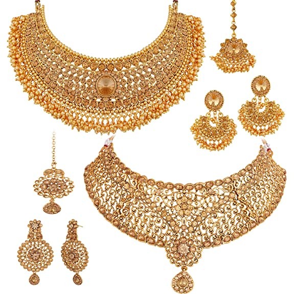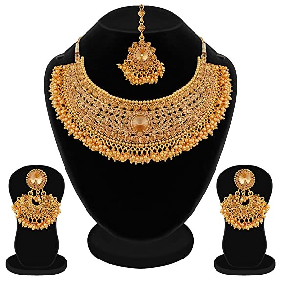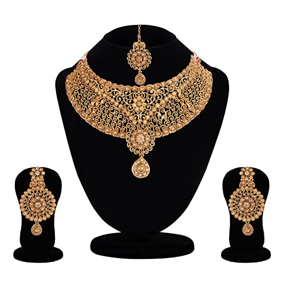 Apara Sparkling Gold Plated LCT Necklace Jewellery Set Combo for Women