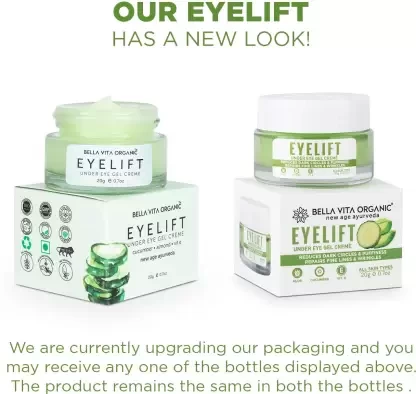 Bella vita organic EyeLift Under Eye Cream Gel for Dark Circles, Puffy Eyes, Wrinkles & Removal (20 g)