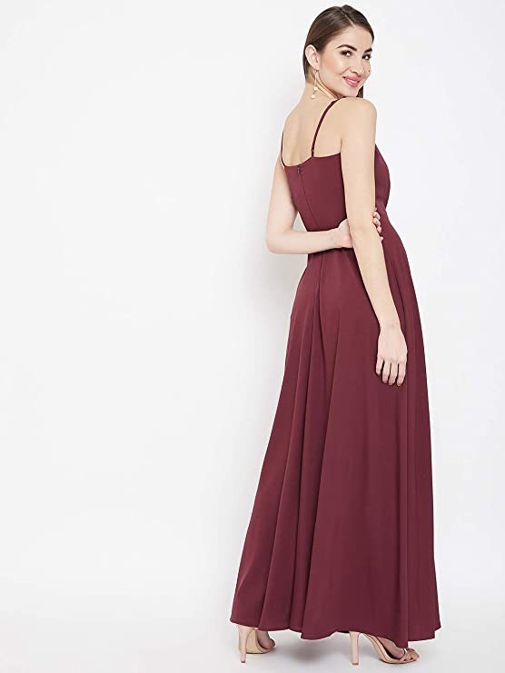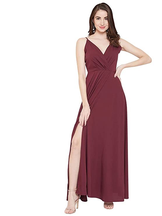 Berrylush Red Solid V Neck Maxi Dress