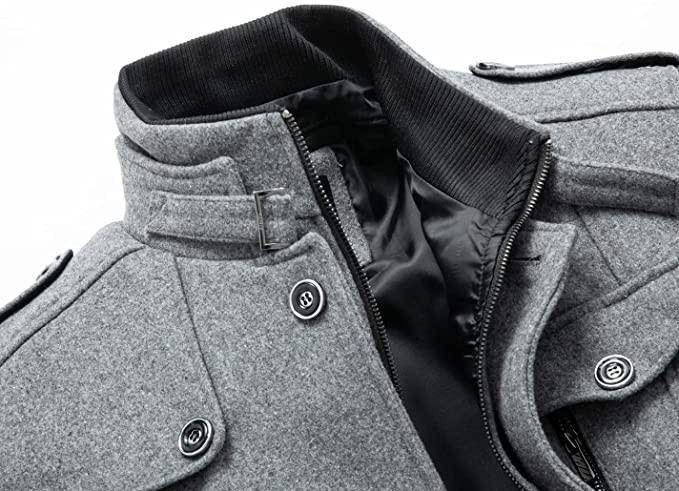 Chouyatou Men's Winter Stylish Wool Blend Single Breasted Military Peacoat