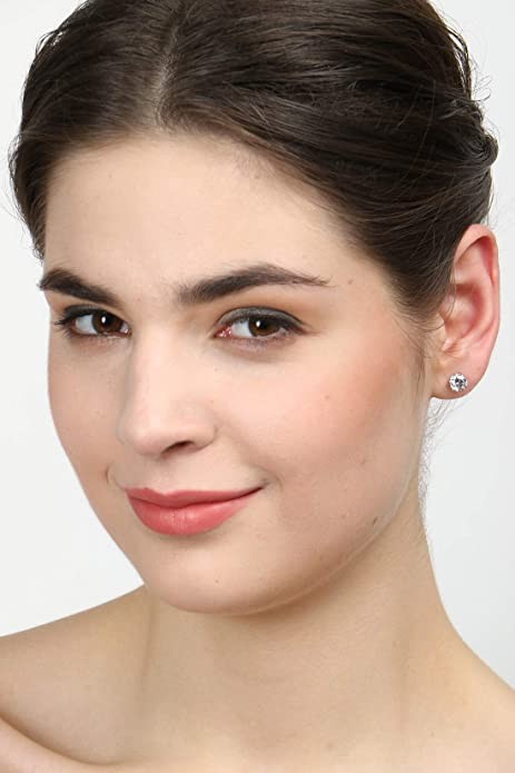 CLARA 925 Sterling Silver Rhodium Plated 5 Stone Pendant Earring Necklace Set with Chain Gift for Women and Girls