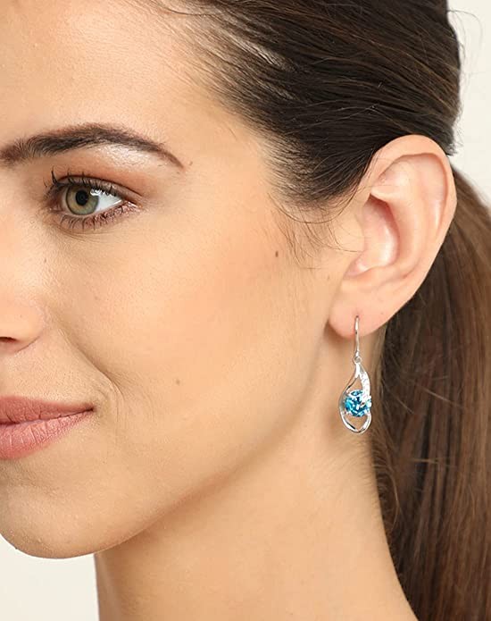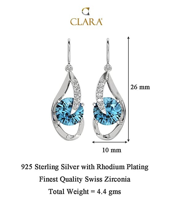 CLARA 925 Sterling Silver Sky Blue Eye Pendant Earring Chain Jewellery Set | Rhodium Plated, Swiss Zirconia | Gift for Women & Girls