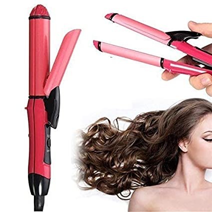 DIBEJI New Nova 2 in 1 Hair Straightener and Curler with Ceramic Coated Plate, Hair Straightener and Curler for Women (Pink) (2 in 1 Hair Straightener and Curler)