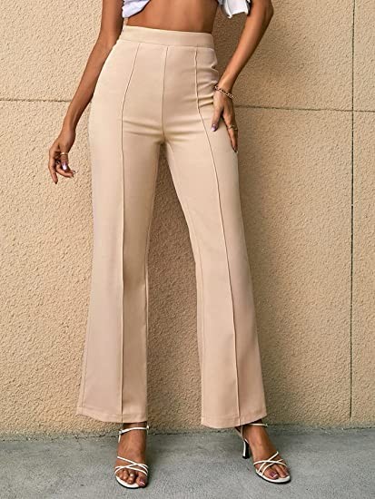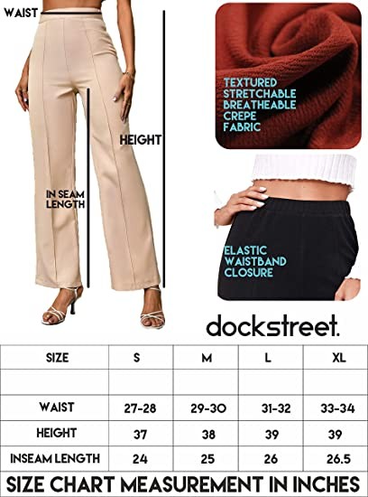 dockstreet Women's Elastic High Waist Split Hem Flare Leg Elegant Casual Comfortable Fit Regular Palazzo & Pant/Truosers