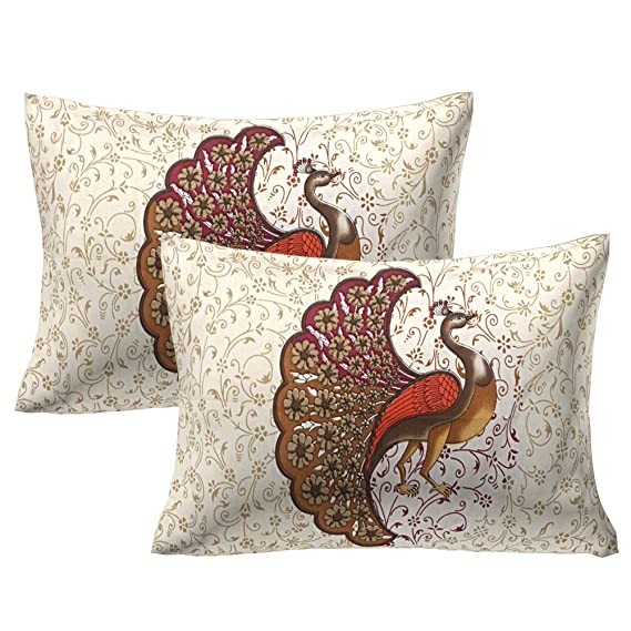 EarlyMart Cotton Comfort 144 TC Rajasthani Jaipuri Traditional Animal Double Bed Bedsheet with 2 Pillow Covers (Double_029, Orange, King Size)