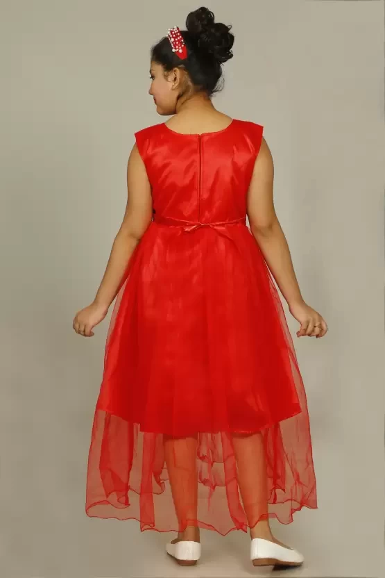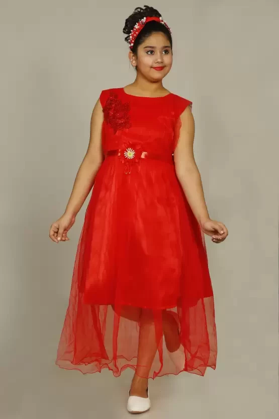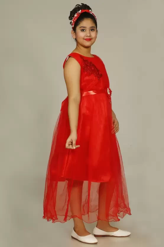 Girls Maxi/Full Length Party Dress (Red, Sleeveless)
