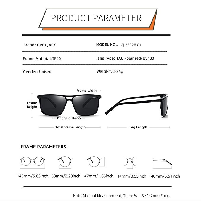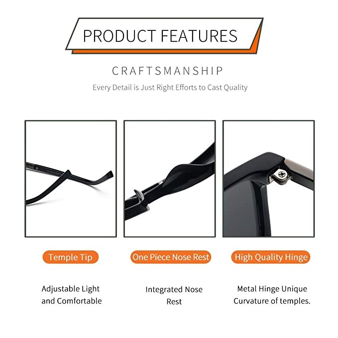【Polarized UV Protected】- Polarized sunglasses against harmful UVA/UVB rays and reduce glare reflected off of roads, bodies of water, snow, and other horizontal surfaces. Restore true color, eliminate reflected light and scattered light and protect eyes perfectly.