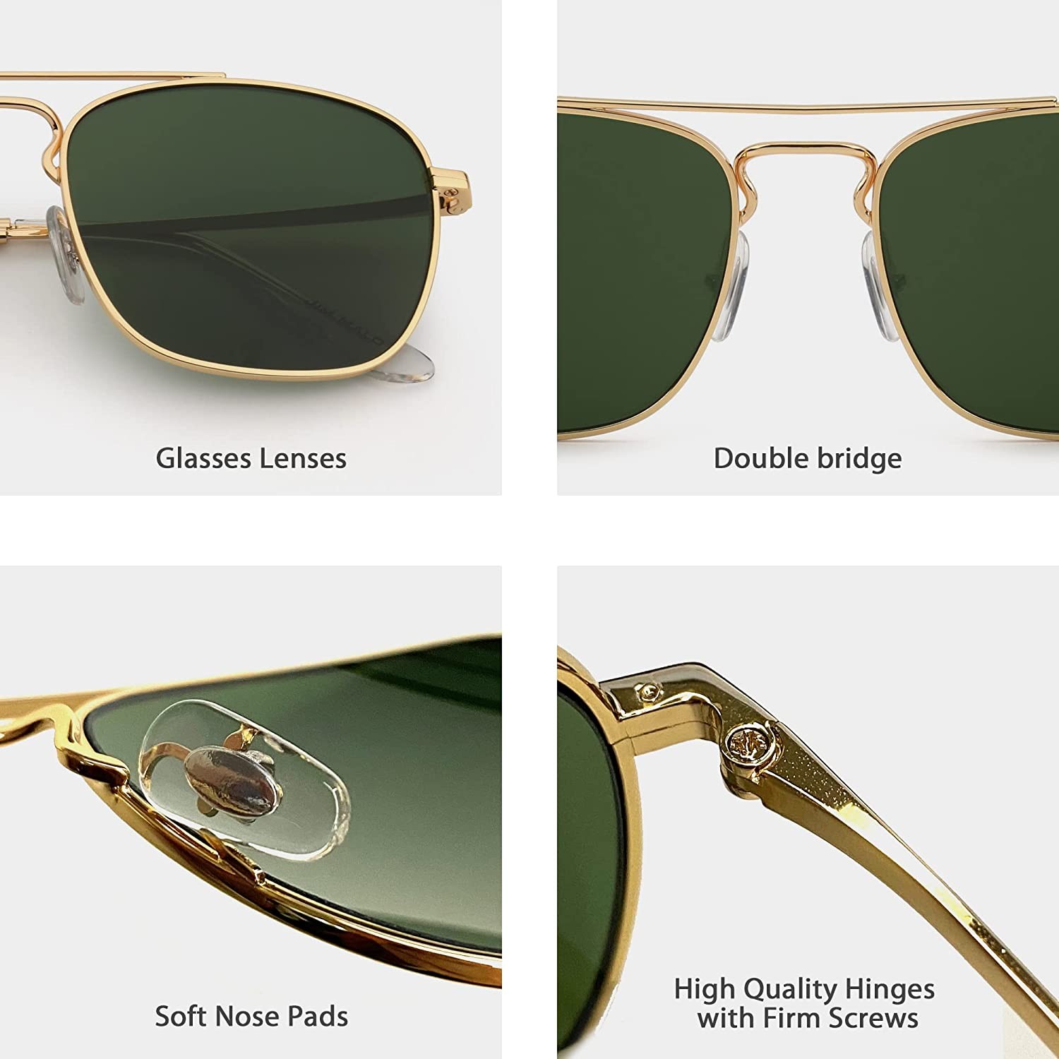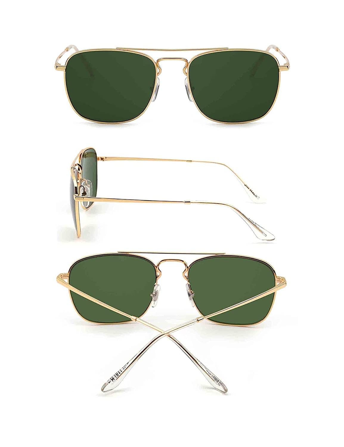 Fashion and stylish design - The square aviator sunglasses is suitable for any face. Alloy metal frames with acetate temple tips and glass lenses are impact, scratch resistant and durable that can show your taste, your choice, your personality.