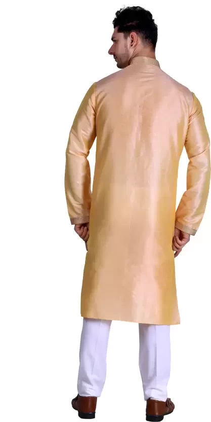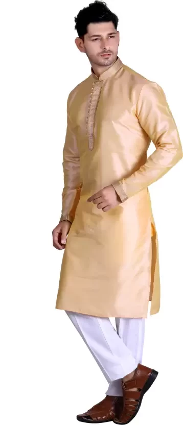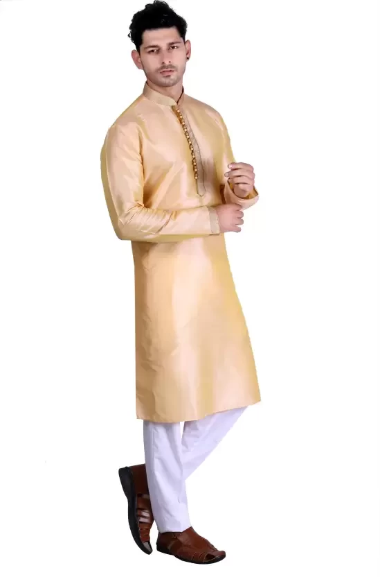 Men Embellished Cotton Silk Straight Kurta (Gold)