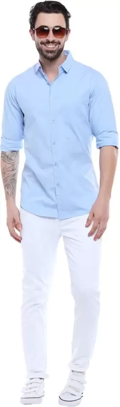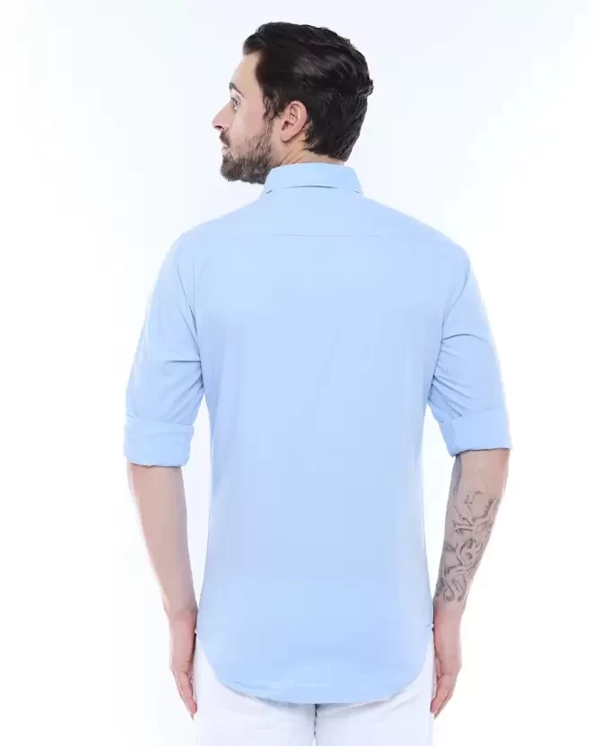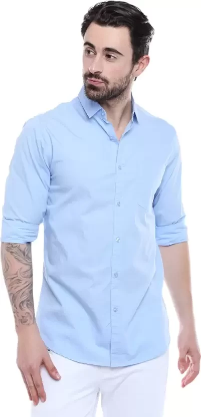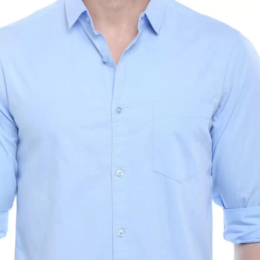 Men Slim Fit Solid Spread Collar Casual Shirt