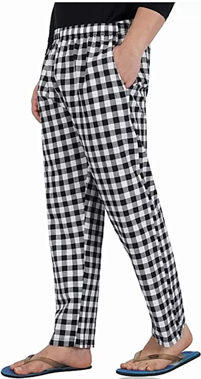 Men's Cotton Checkered Pajama, Pyjama, Blue, Red and Yellow (Pack of 3)