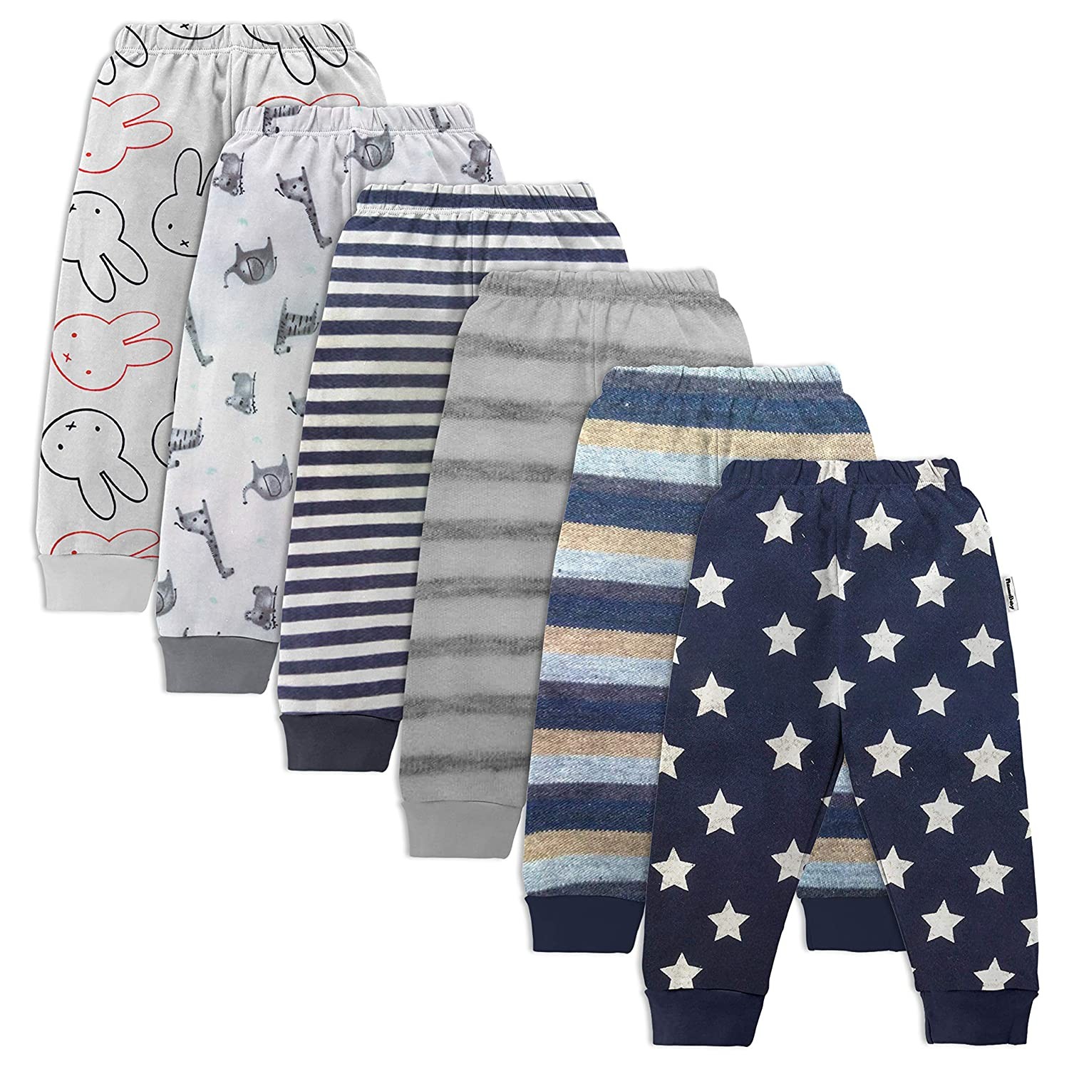 NammaBaby Unisex Baby Cotton Mixed Print Pyjama Rib Pants Assorted Prints- Pack of 6
