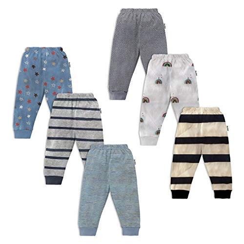 NammaBaby Unisex Baby Cotton Mixed Print Pyjama Rib Pants Assorted Prints- Pack of 6