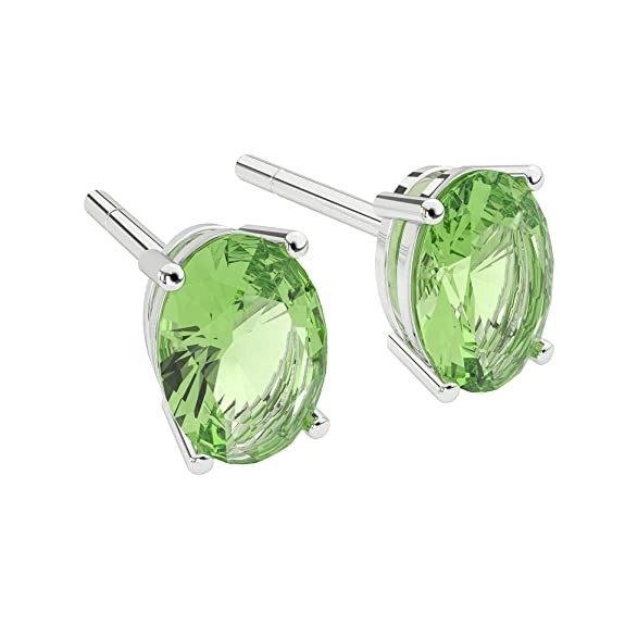 Nora Nico Natural Peridot 7x5mm Oval 925 Sterling Silver Stud Earrings for Women and Girls