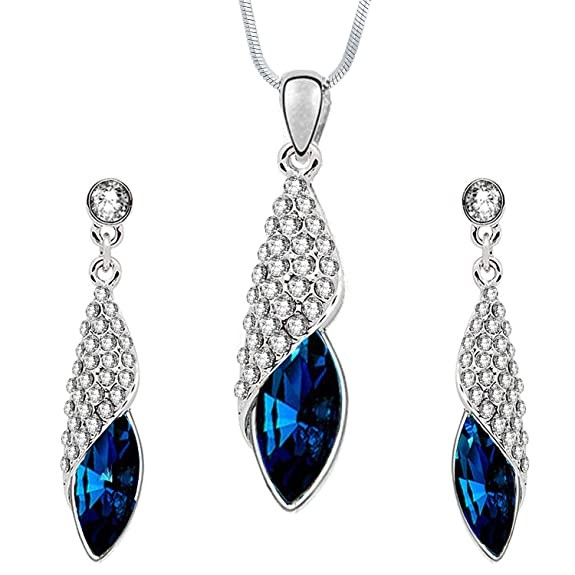 Om Jewells Combo of Crystal Blue Exquisite Rhodium Plated Pendant Necklace Set and Bracelet for Women