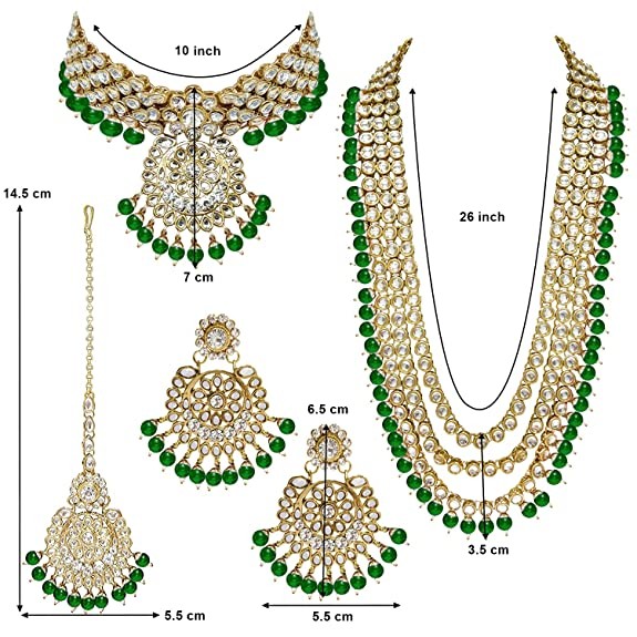 Peora 18K Gold Plated Kundan Faux Bead Bridal Necklace Jewellery Set for Women Girls