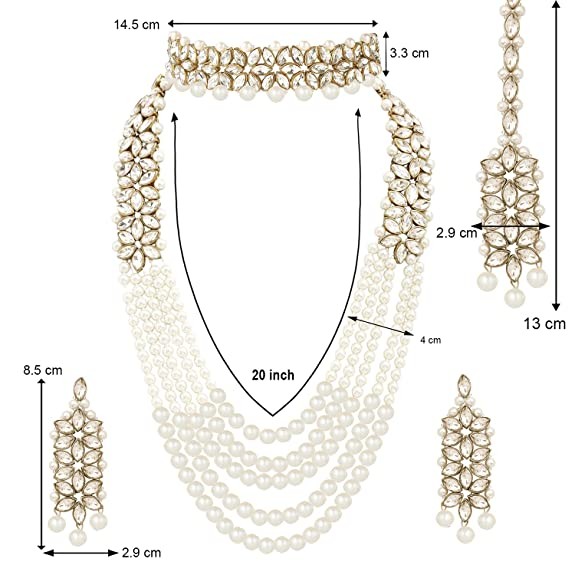 Peora Gold Plated Crystal Pearl Wedding Bridal Necklace Jewellery Set with Earring Maang Tikka for Women Girls