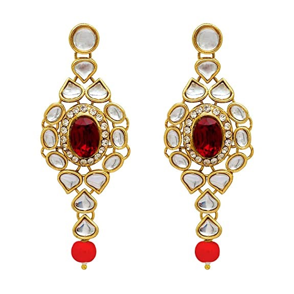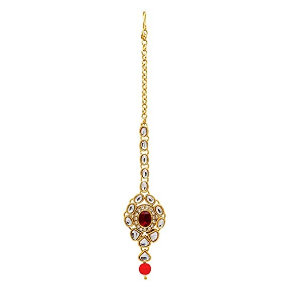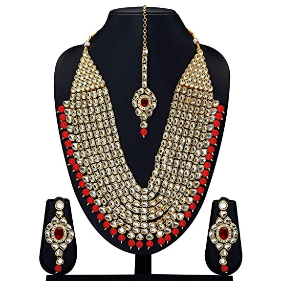 Peora Kundan Pearl Maroon Layered Long Jewellery Necklace Set with Earring Maang Tikka Earrings for Women