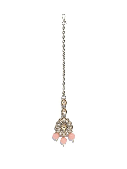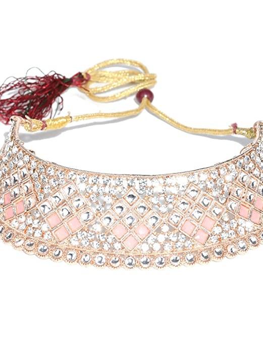 Priyaasi Pink Kundan Stones Rose Gold Plated Choker Set with MaangTikka