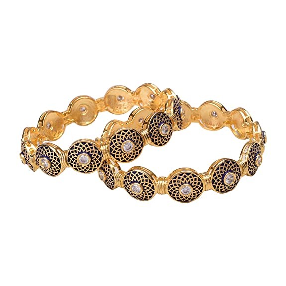 Ratnavali Jewels Brass Gold Plated and Cubic Zirconia Bangles for Women