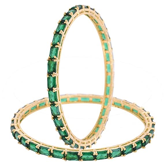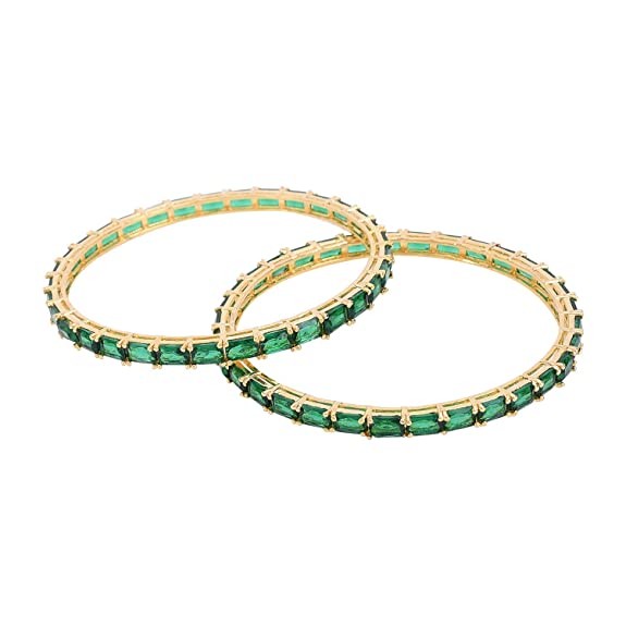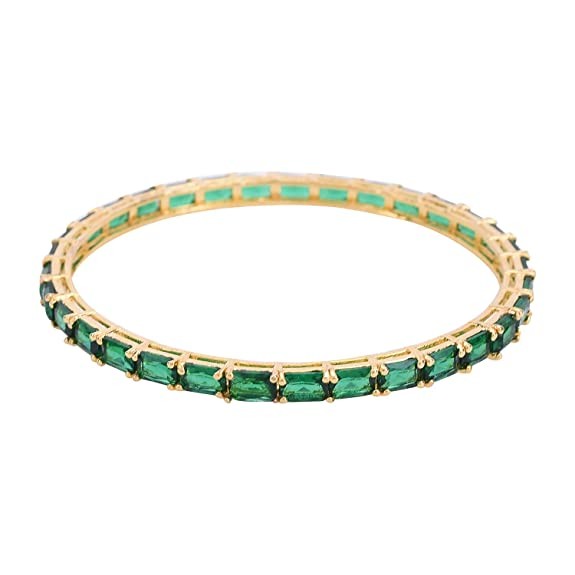 Ratnavali Jewels Gold Plated Green AAA CZ American Diamond Bangle Bracelet for Women Girls Party RV3388G