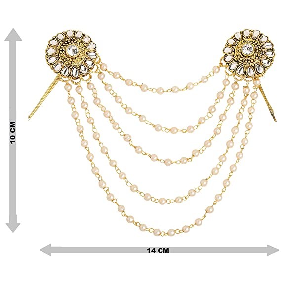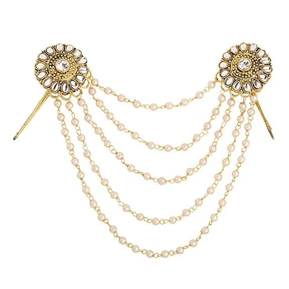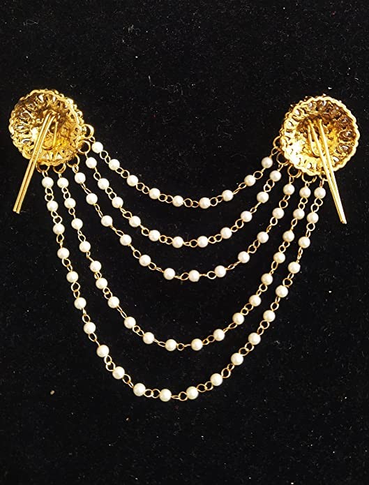 Sanjog Traditional Bahubali Inspired Wedding Pearl Layed Hair Brooch Juda Hair Decoration For Women Girls For Wedding