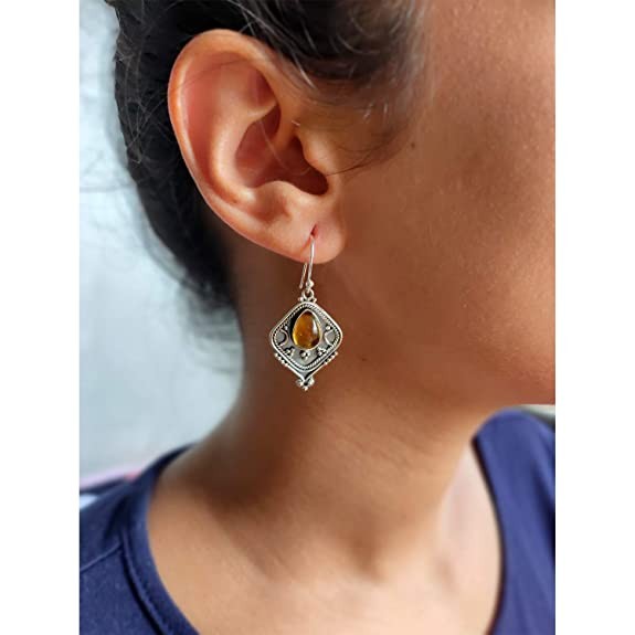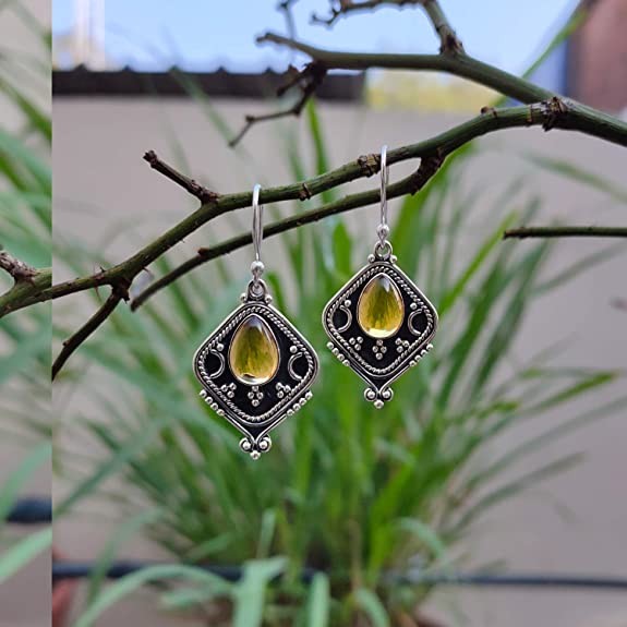 Silver Planets 92.5-925 Sterling Silver Trquoise,Peridot,Labradorite,Citrien Stone Fashion Traditional Latest Ethnic Earring for Women and Girls