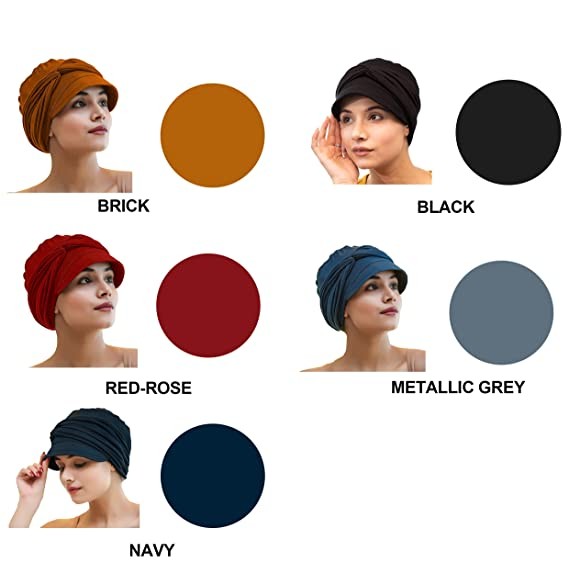 The Headscarves Women's Bamboo Viscose Visor Cap with Gathered Band (HS108_Multicolors 2 Piece Set)