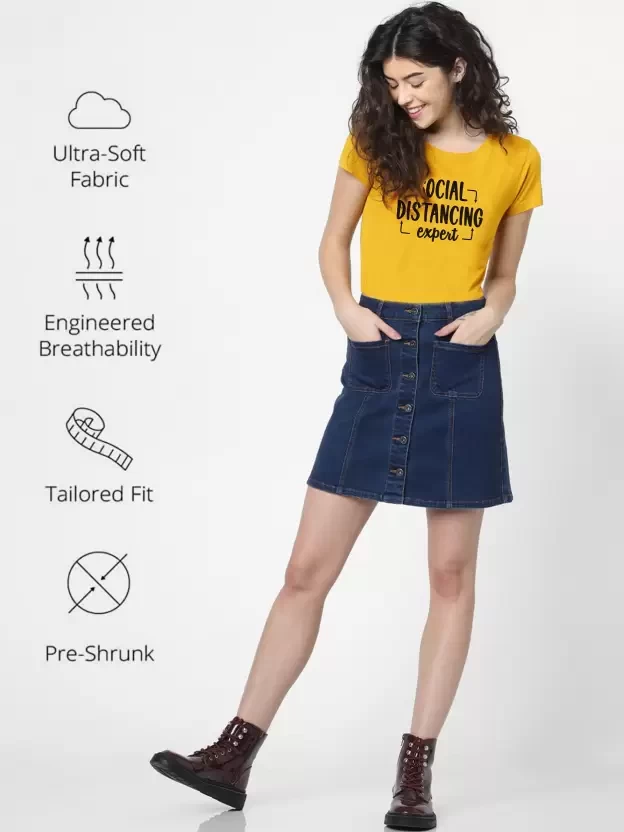 Typography Women Round Neck Pink, Yellow T-Shirt (Pack of 2)