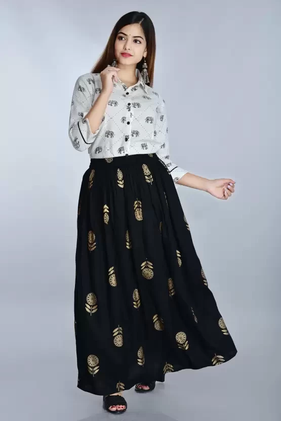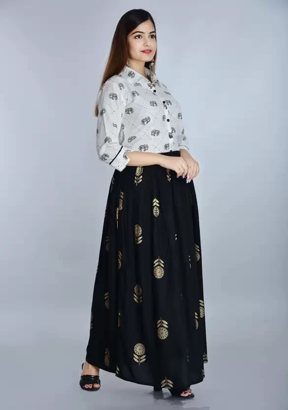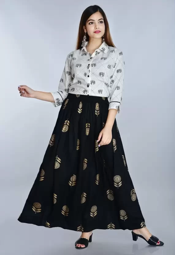 Stylish#510 WhiteBlackShirt&SkritSet -S