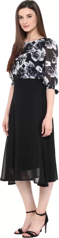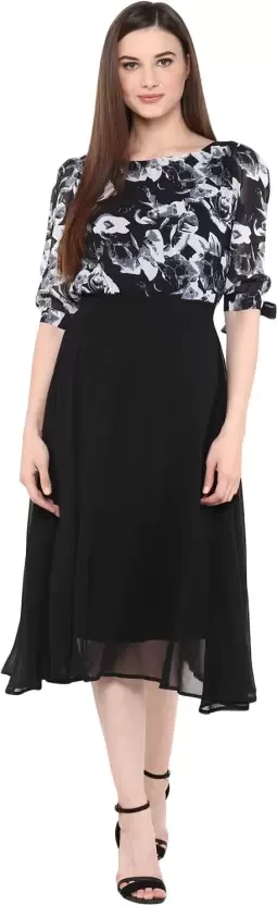 Women Fit and Flare Black Dress