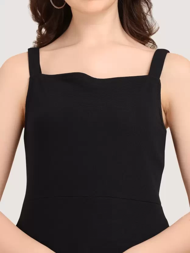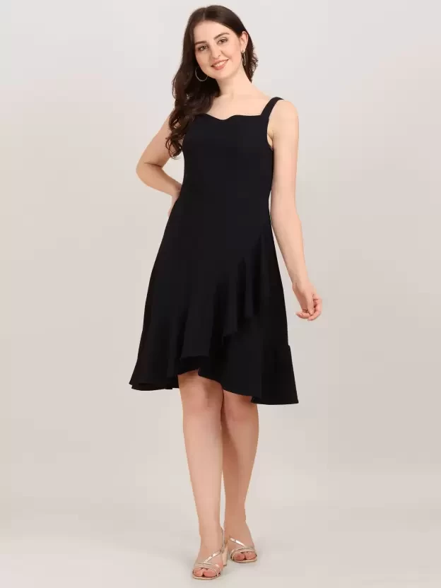 Women Ruffled Black Dress