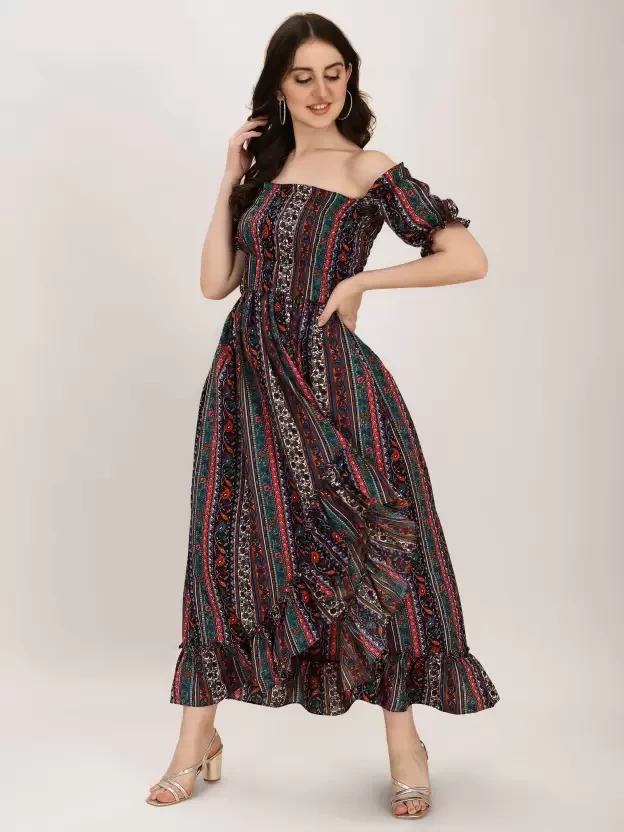 Premium quality dress with ruffles. Styling Tip: Can be be styled both as a breezy outfit and a playful party outfit.