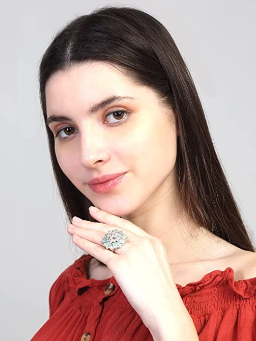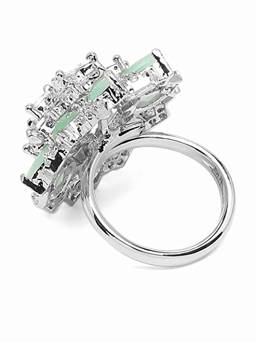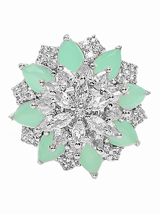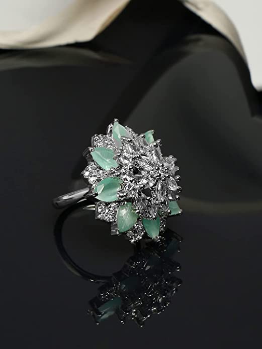Yellow Chimes Rings for Women American Diamond Ring Rhodium-Plated Pestal Green AD-Studded Floral Finger Ring For Women and Girls.