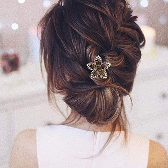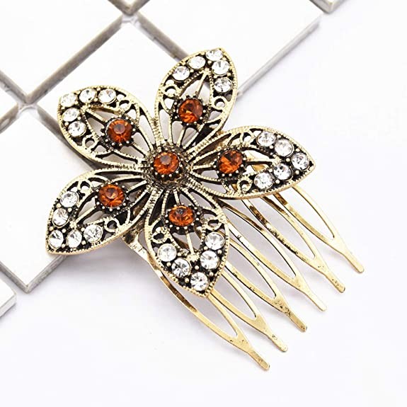Young & Forever Antique Gold Brown Crystal Flower Hair pins Hair Clips Hair Comb for Girls Fancy Diamond Hair Accessories for Women