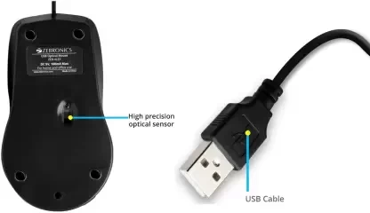 ZEBRONICS ALEX Wired Optical Mouse (USB 2.0, Black)